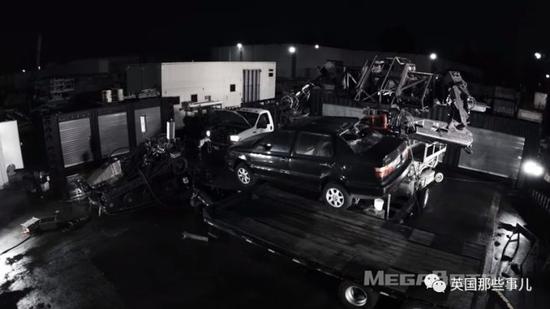 然后,把汽车抬起来,然后重重摔下,