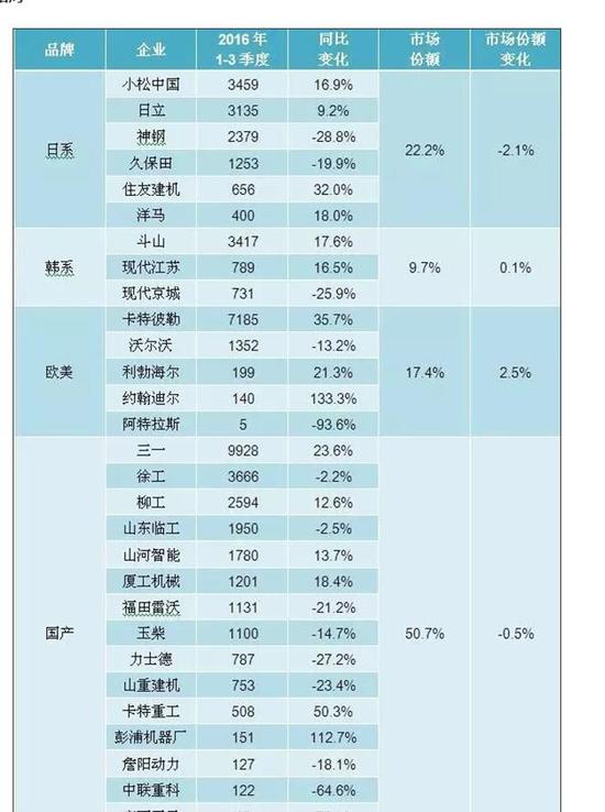 这个数字来自中国工程机械工业协会CCMA2015-2016统计数据,小编找到了数据图。