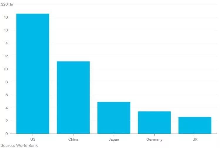 ▲2016年,中国GDP总额仅次于美国。(数据来源:世界银行)