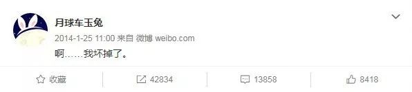 ▲2014年,“玉兔”号月球车在微博中宣布出现机械故障。