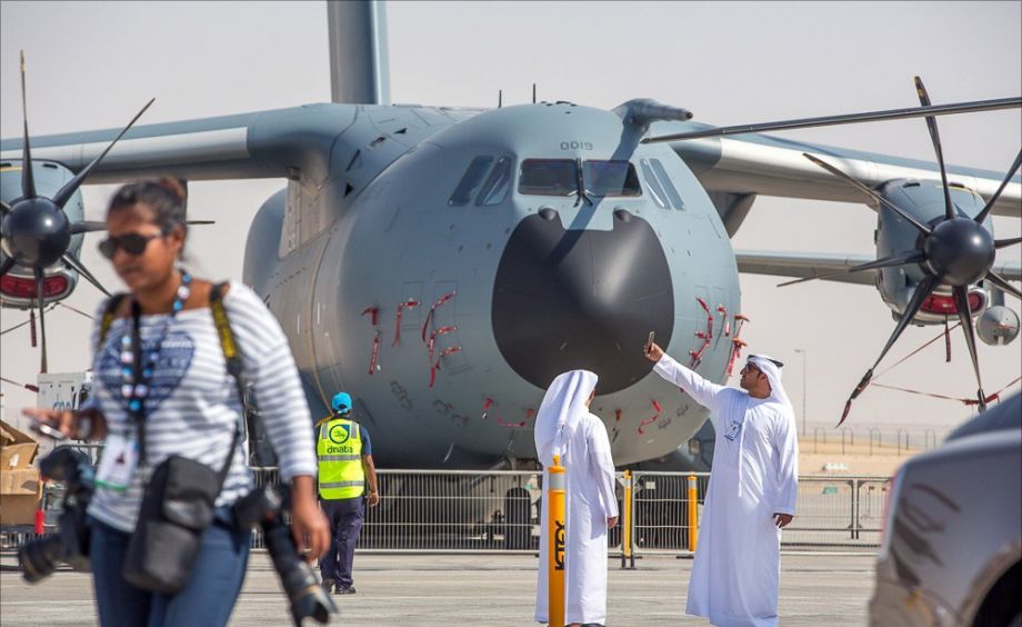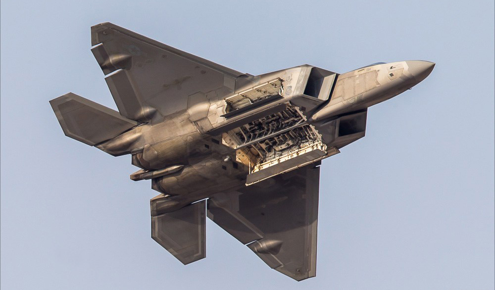 美军B-1B战略轰炸机在航展上进行飞行表演。