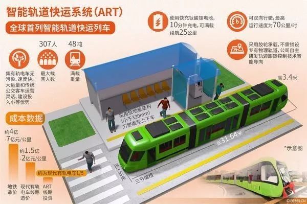 中车株洲所总工程师冯江华说:“不依赖钢轨行驶,一条运行线的建设周期短且能快速投入使用,建设成本上大大低于传统有轨电车。”