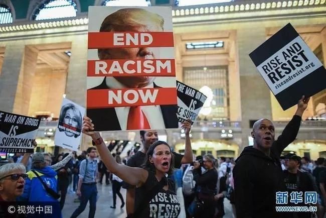 ▲9月18日,美国纽约,当地民众举行“反白人种族主义”集会,抗议总统特朗普。
