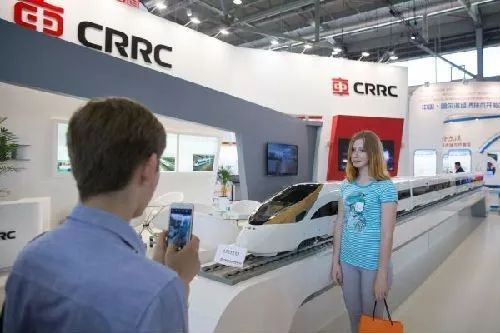 ▲资料图片:2016年7月11日,在俄罗斯叶卡捷琳堡,参观者在第三届中国-俄罗斯博览会中国中车展台留影。(新华社)