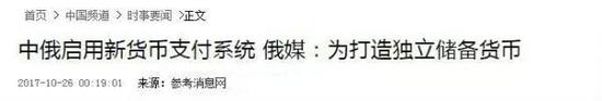 在俄罗斯媒体看来,中俄这一举措的重大意义,不仅在于降低两国之间的货币风险,更是为打造能替代美元的储备货币奠定了基础。