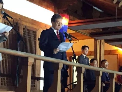 ▲10月27日,韩国驻华使馆举行“2017年度韩国开天节及国军日纪念活动”。图为新任韩国驻华大使卢英敏致辞。(韩联社)