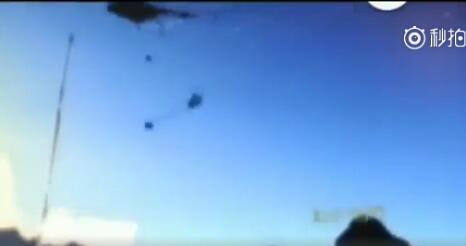 据最新曝光的一段视频显示,一个空投油罐的降落伞与直升机的尾翼缠在了一起,导致尾翼从机上掉落,直升机随即失控并坠毁。