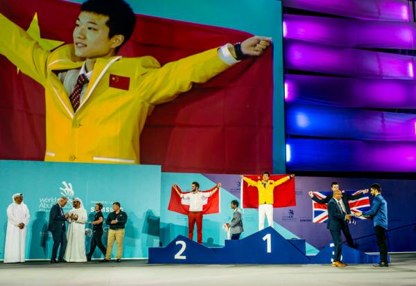 据苏小坡介绍,本届大赛的颁奖方式比较特别,不同于体育比赛那种在每个项目结束后当场举行颁奖典礼的做法,而是在闭幕式上集中公布比赛成绩和名次。所以当颁奖时,“China”这个词响彻全场,阿联酋当地媒体用“中国称霸领奖台”来形容当时的场景。