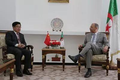 ▲驻阿尔及利亚大使杨广玉与阿尔及利亚公共工程和交通部长阿卜杜勒哈尼·扎阿拉内
