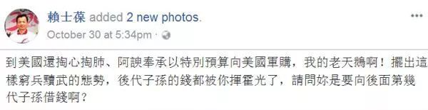 还有网友讽刺,“这是蔡英文们要搞‘台独’必须交的保护费,很合理的”。