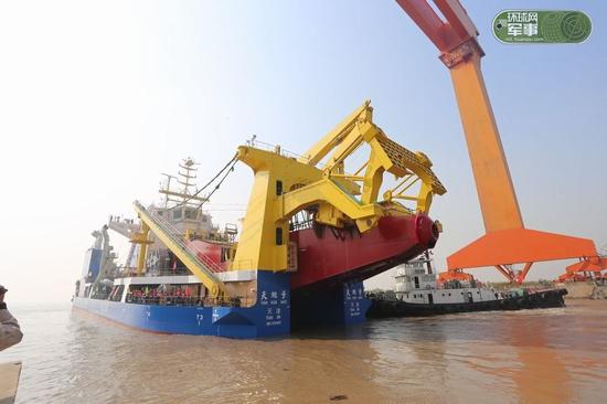 [环球网军事报道 记者 范凌志]由中国交建所属中交天津航道局有限公司(以下简称“天航局”)投资并联合设计的6600千瓦绞刀功率重型自航绞吸船“天鲲”号,3日在江苏启东成功下水。在“天鲲”号之前,外界对于绞吸船的认识来自于被称为“造岛神器”的“天鲸”号。天航局方面当天表示,“天鲲”号下水标志着中国已经能够自主设计建造新一代的重型自航绞吸挖泥船,可以更好地满足国家经济发展和国防建设需要。因为其强大的填造能力,“天鲲”号被网友冠以“地图编辑器”的昵称。在下水仪式前一天的记者会上,中国交建天津航道局有限公司总工程师顾明信心满满地对记者说,“天鲲”号虽然不是世界最大的挖泥船,“但绝对是最先进的!”