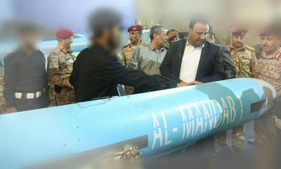 也门军队和政府高官到接收现场查看“Al-Mandab-1”反舰导弹。