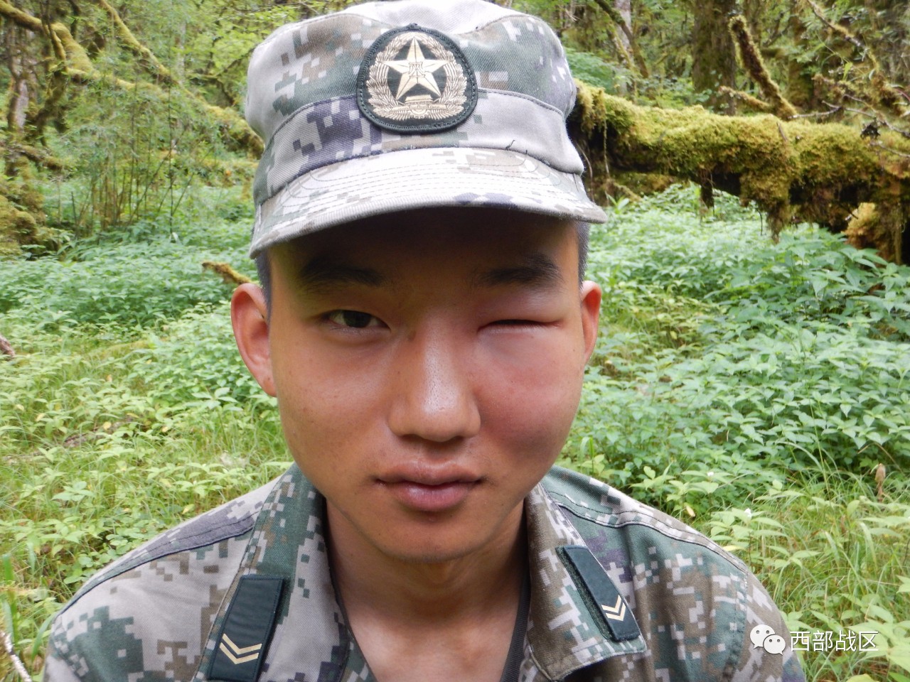 一连普拉安扎拉侦巡眼睛被毒蜂蛰的战士照片