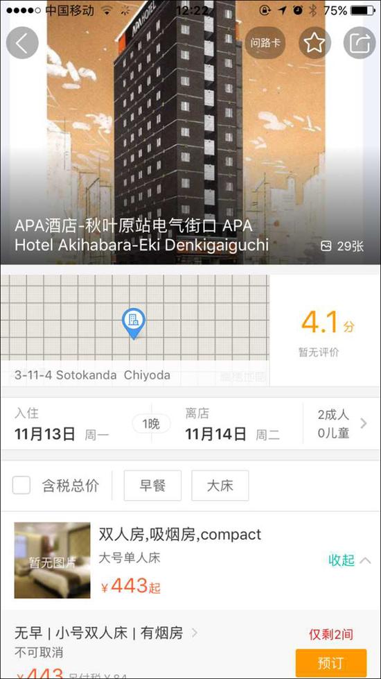 经评论区 @你跪下我要审你 提醒,不仅仅是去哪儿,美团也悄悄上架了 APA 酒店的预订。现在是 2017-11-13 12:26 截图如下: