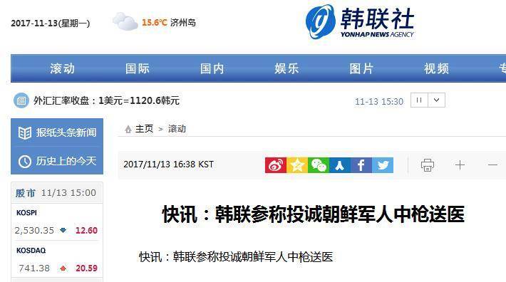 韩国KBS电视台13日称,该朝鲜士兵13日下午3时31分经板门店共同警备区前方哨所前往韩方“自由之家”。他肩膀和手臂中枪受伤,韩军用直升机将其送往医院。该事件发生后,韩军加强警戒态势,以防特殊情况发生。