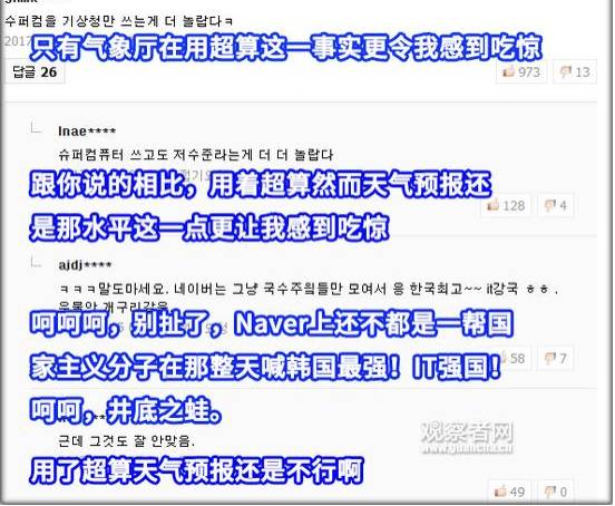 先说咱们的邻居韩国吧。韩国的主流媒体《朝鲜日报》在过去的一天里就详细报道了中国在超级计算机领域上最新取得的这一“世界霸主”的成绩;同时,这家韩国媒体也在反思韩国在超级计算机这个能“直观反映一国实力”的领域被中国超越并远远甩开的困境,表示韩国只有5台超级计算机上榜,其中虽然在前100名里拥有两台(排名第57和58),但仅仅只服务于气象部门…