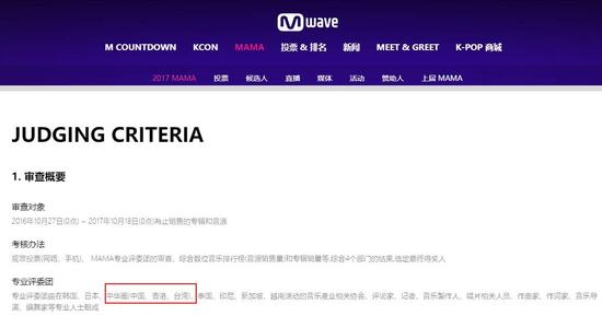 另外,环环在MAMA官网“审查概要”一栏发现,仍有“中华圈(中国、香港、台湾)”的说法。