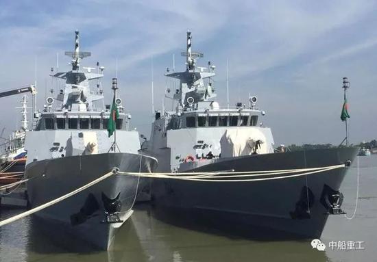 军事:中国与孟加拉合造2艘新军舰交付 孟国总统亲自接收