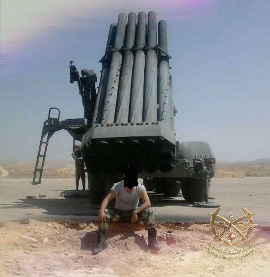 叙利亚政府军使用的BM-27型220毫米火箭炮,这种火箭炮的性能还远不如SR-5的220毫米火箭