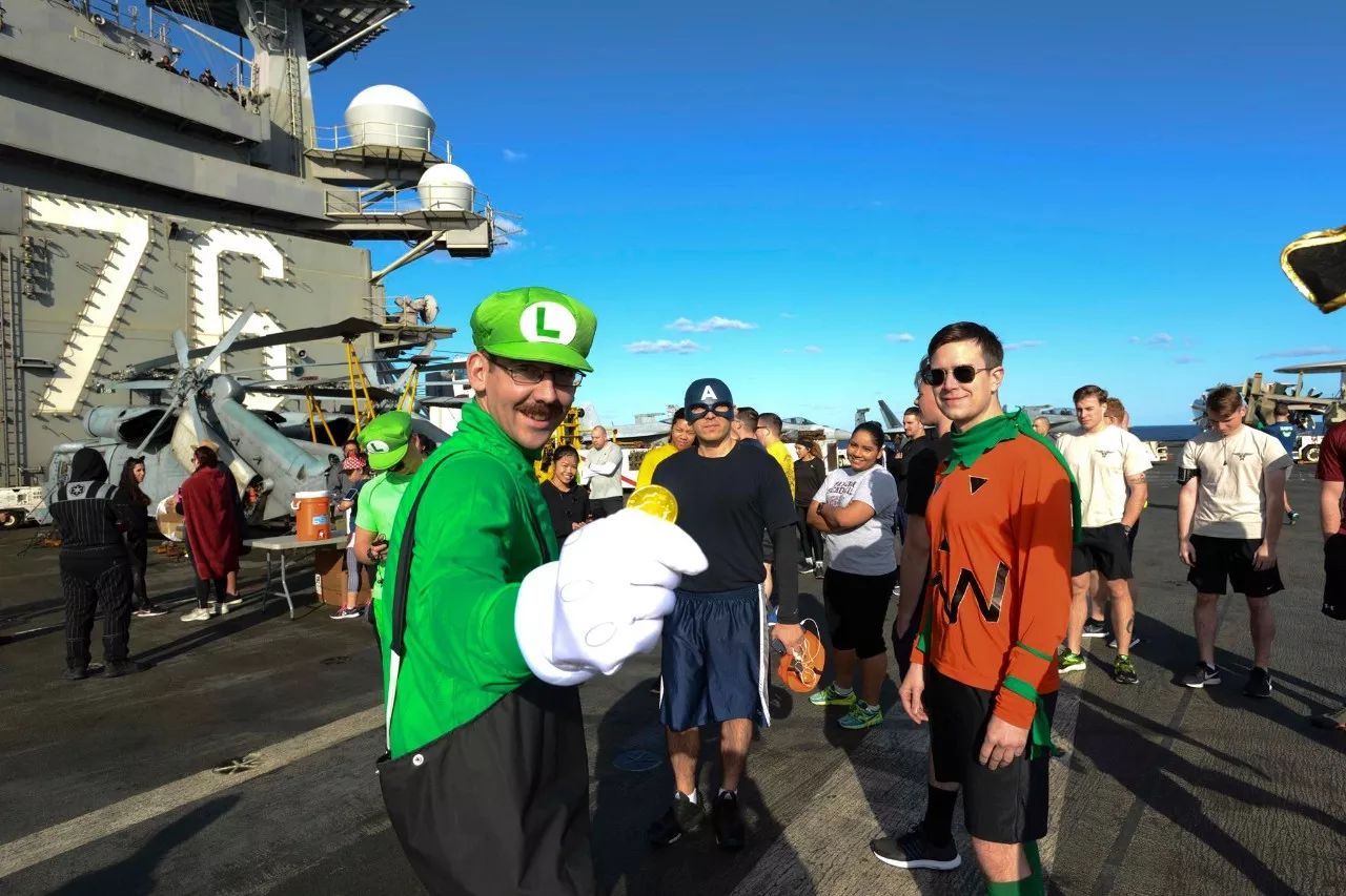 2017年万圣节期间,美军“里根”号航母迎来两只“怪物”。