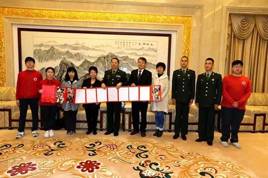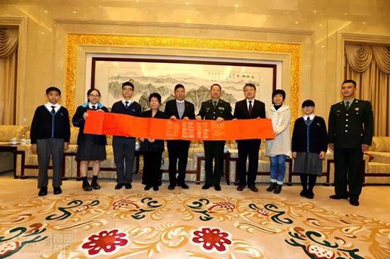 军报记者-南部战区消息, 11月24日下午,“澳门人澳门情文化艺术协会”会长朱美桃与澳门特别行政区政府、中联办和澳门民众代表等20余人,带着15万余名澳门同胞的祝福与感谢来到驻澳门部队凼仔营区,赠送17本精美签名册。驻澳门部队政治部主任窦国杰大校代表驻军接受感谢信和签名册,并表示要珍藏这份沉甸甸的珍贵礼物,珍视澳门同胞的真情爱戴,为维护澳门长期繁荣稳定作出新的更大贡献。