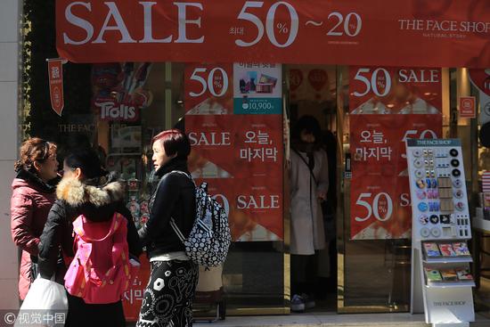 当地时间2017年3月6日,韩国首尔,明洞街头。中国游客的缺失将使明洞商家和免税店等受到冲击。