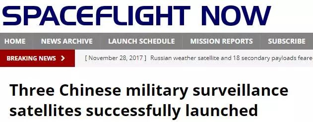 美媒称,一枚中国火箭11月25日(北京时间)将3颗探测性军用侦查卫星送入轨道,这是不到两个月时间里中国第二次发射一组3颗卫星。