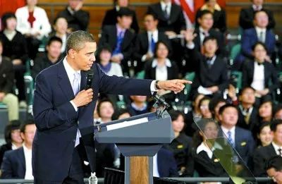 ▲资料图片:2009年,奥巴马在复旦大学与青年学生对话。