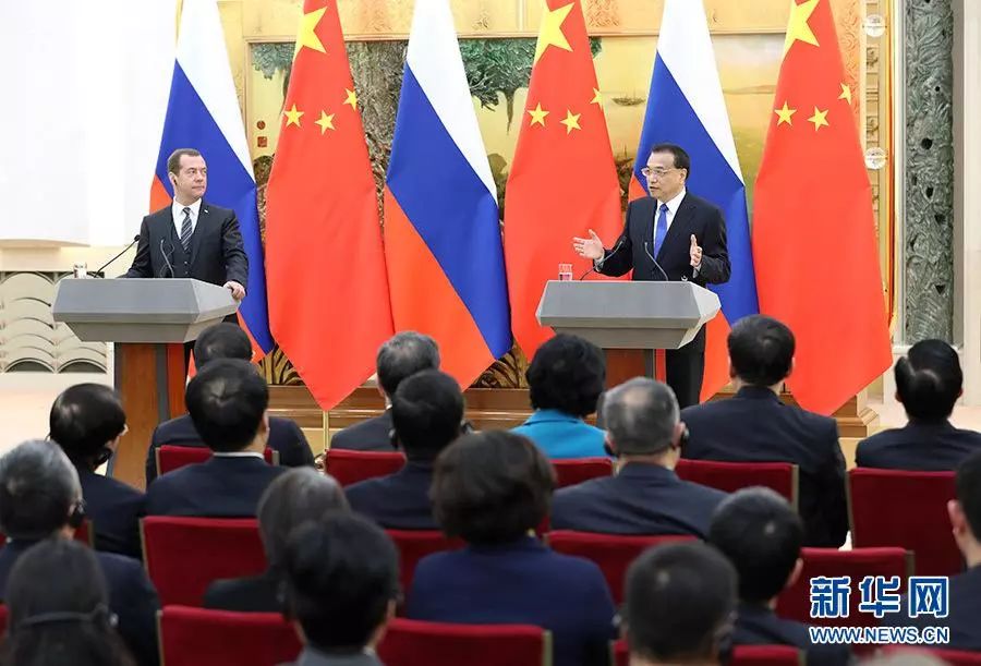 ▲11月1日上午,国务院总理李克强在人民大会堂与俄罗斯总理梅德韦杰夫举行中俄总理第二十二次定期会晤后,共同会见记者并回答提问。