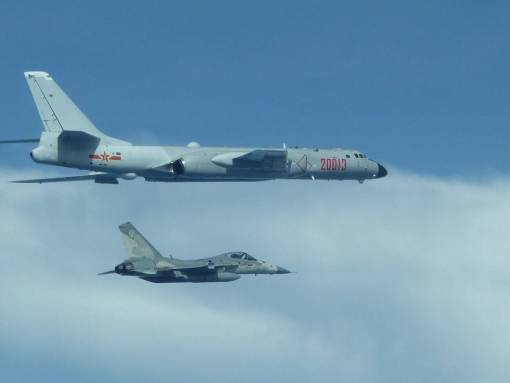 台防务部门此前公布的IDF战机伴飞轰-6照片。(来源:台湾“中央社”)