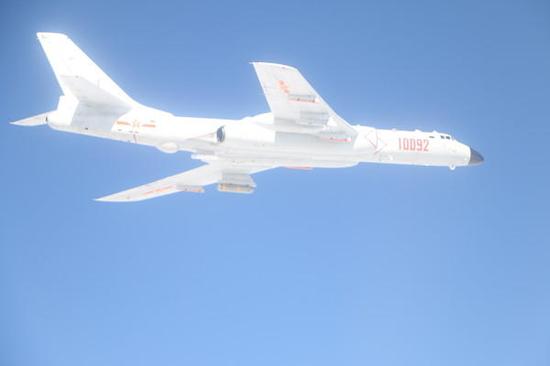 台湾防务部门发布的解放军军机轰-6照片。(图片来源:台湾《东森新闻云》)