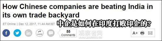 印度《经济时报》就关注到了中国企业在印度的快速发展,于当地时间12日发表名为《中企如何在印度打败印企》的报道。不过印媒并没有关注中国的创新热潮和中国企业在中国市场培养的竞争力和适应力,而是把关注点放在了“政府扶持”上。