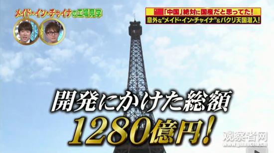 节目组在来到中国采访调查后,他们发现中国某地竟花费1280亿日元(约合人民币75亿),山寨了一座自己的埃菲尔铁塔↓