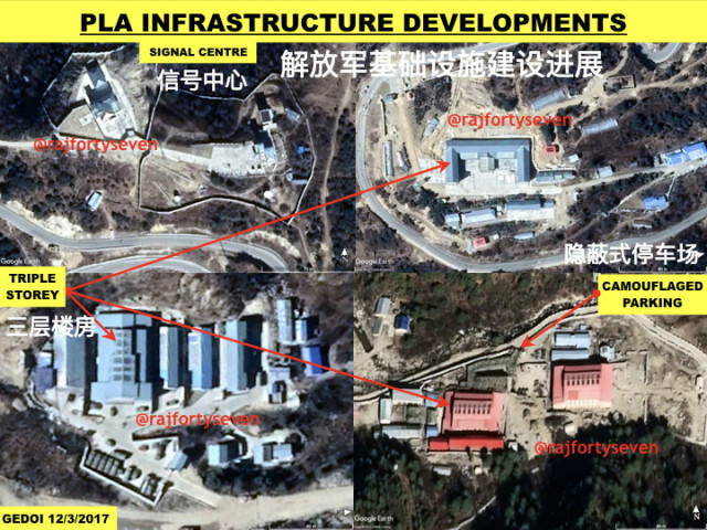 不久前,《印度时报》披露,这个冬天,约1600至1800名中国士兵,在洞朗建立了事实上的驻扎点。而且,中国军队已经建好了两个直升机平台,数十个预制的房屋、掩体及商店,还升级了公路。