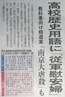 此前几天,日本《产经新闻》的一则消息称,为配合日本初高中下期学习指导大纲,一家叫做“高中大学联合历史教育研究会”的组织拟将发布一个“历史用语精选”的初选案本。