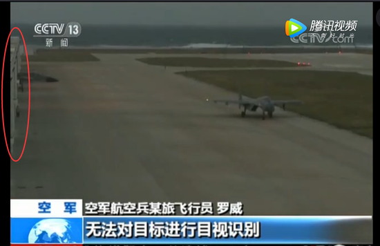 今年11月央视报道截图,空军歼-11B战机千里远航赴南海岛礁,演练昼夜空战项目。红圈位置为永兴岛强化机库