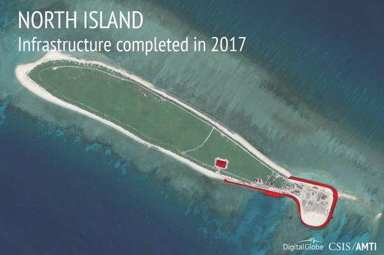 AMTI用红色标注的2017年内北岛新建设施(图片来源:AMTI)