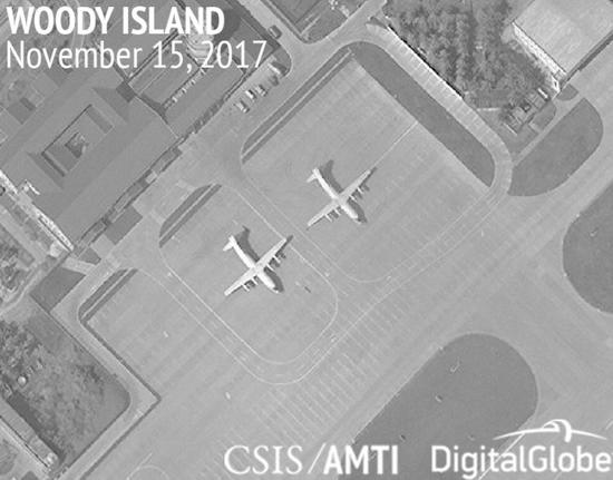 今年11月15日的卫星图片,永兴岛上的“运-8”(图片来源:AMTI)