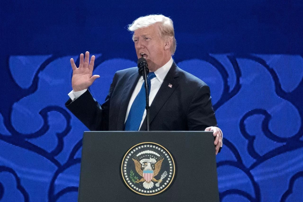 ▲资料图片:2017年11月10日,美国总统特朗普在亚太经济合作组织峰会上表示,美国受到全球贸易的不公平待遇。(路透社)