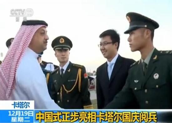 阅兵式结束后,卡塔尔副首相兼国防事务国务大臣哈立德·阿提亚接见了来自中国人民解放军三军仪仗队的教官团(截图)