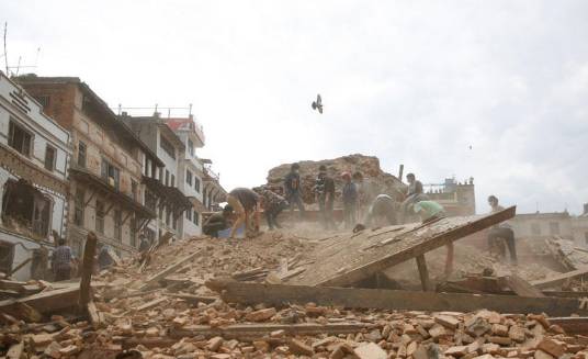 ▲资料图片:2015年4月尼泊尔发生地震,当地部分建筑已经被完全震毁。