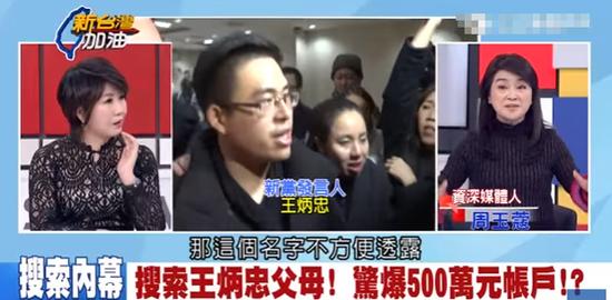 周玉蔻还称,除了王炳忠家中被搜到的“稿费”,王家账户内还出现500万新台币。周玉蔻便称,王炳忠疑似替大陆发展组织。