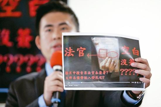 王炳忠委任律师陈丽玲进一步指出,台“刑事诉讼法”明确规定,搜索票要由法官签名,即使盖上官章,仍必须“签名”,搜索票才是合法有效”。