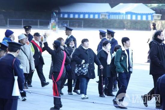 参贺人群在警察引导下进入皇居正门(日本《每日新闻》报道截图)