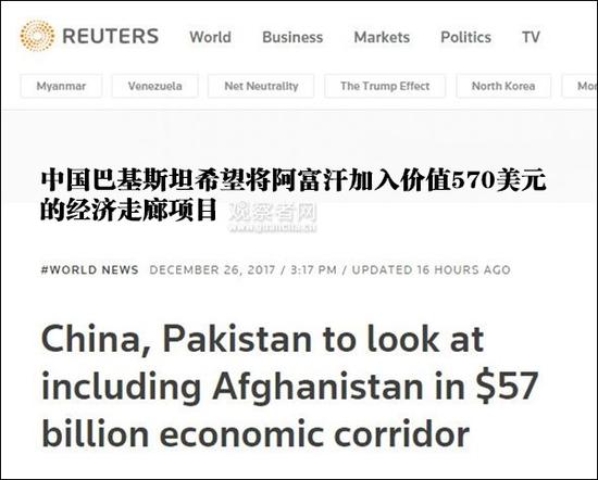 文章称印度获得美国的支持,反对中巴经济走廊。理由是项目经过了有争议的领土。而中巴经济走廊则是希望将阿富汗纳入其势力范围。