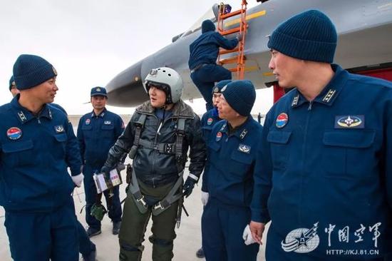 着陆归来,机务官兵立即围着飞行员张威了解飞机使用情况。杨盼 摄