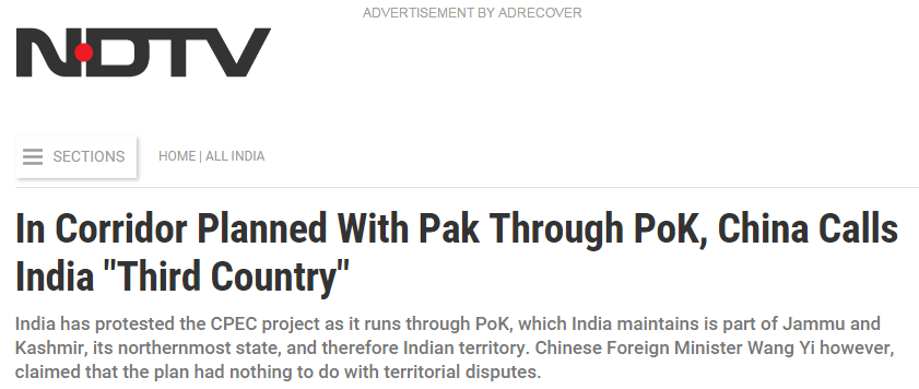 军事:中巴经济走廊令印度不安 印媒称我们居然只是第三方