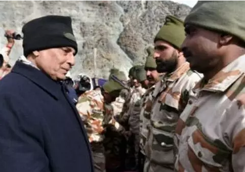 印度内政部长辛格2017年12月31日晚在中印边境的马特里“印藏边境警察部队”营区慰问官兵,2018年1月1日,他又在北阿坎德邦的涅隆谷边防哨所与士兵们一起庆祝新年。