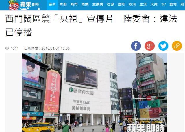 目前,这则节目宣传片已经被台湾方面从台北的“新世界大楼”的广告屏上撤下并禁播。而且从台湾当局的表态来看,播出这则宣传片的广告方还会遭到台湾当局的惩罚。