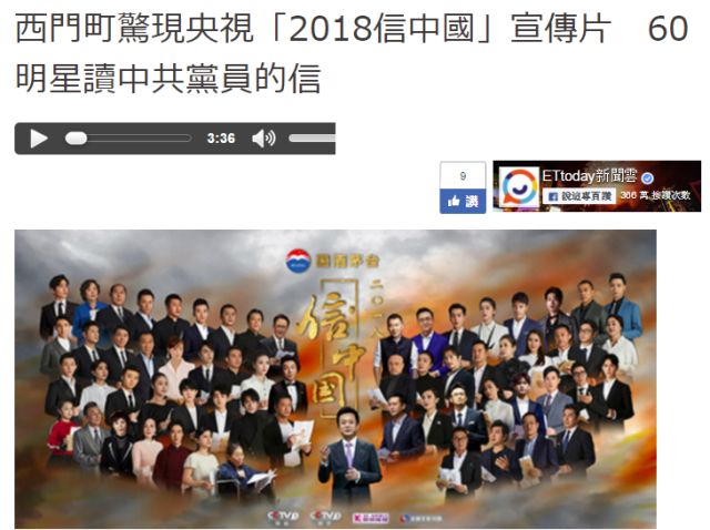 根据多家台湾媒体报道,《信·中国》的宣传片之所以在台湾被禁播,是因为这个宣传片[违法]了。